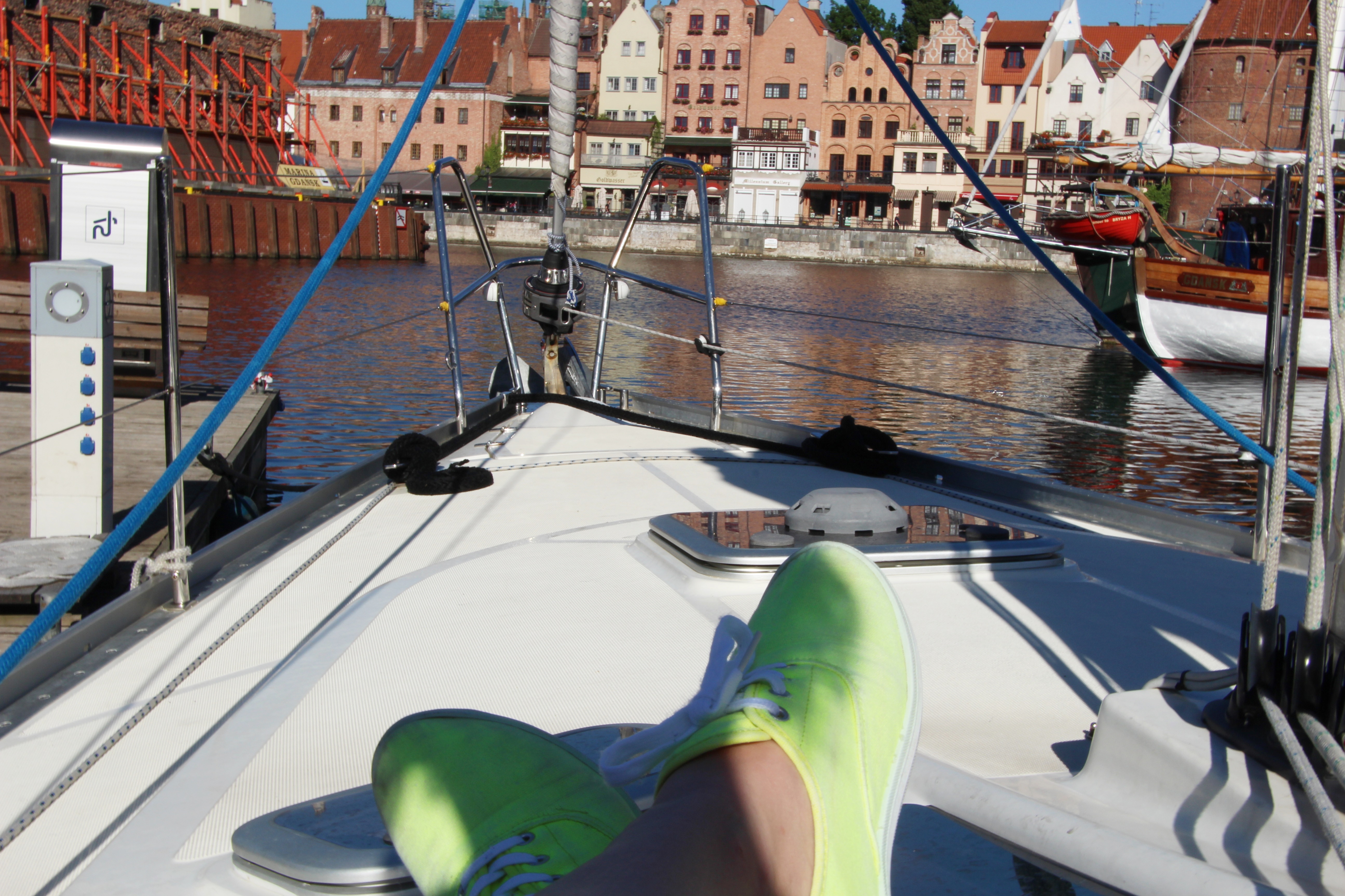Wystartowałyśmy z Mariny z Gdyni, dalej do Gdańska, wpływając do portu natknęłyśmy się na kontrolę policji 😉 Spałyśmy w Gdańsku w Marinie – w samym sercu miasta. Tu rozmowy trwały do 1 rano, trudno było położyc się spać. Pobudka z widokiem z mariny – jest bezcenna. Rano ruszyłyśmy do Helu, by móc zjeść świeżą rybkę w w Capitanie Morganie. Przy dobrych wiatrach, po 17 wróciłyśmy do Mariny w Gdyni. Rozstawać się było szkoda. A czas spędzony wspólnie ( nie znałyśmy się wszystkie) był bezcenny.